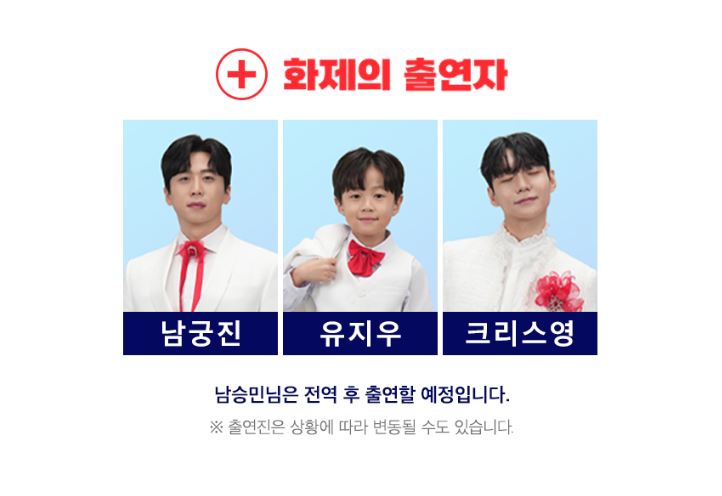 남승민님이 합류하여 TOP7 완전체로 콘서트가 진행됩니다. 유지우님은 출연하지 않게 되었음을 알려드립니다.