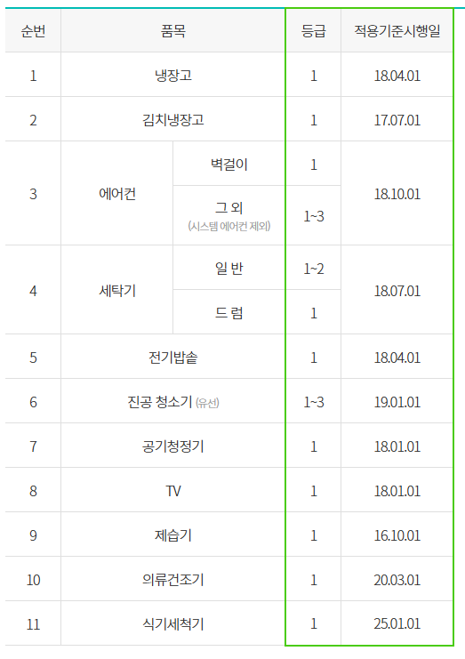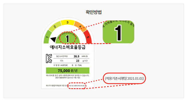 - 제품에 에너지효율등급 라벨이 부착되어 있어야 함